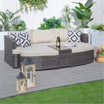 Our Hawaii daybed is super comfy and is crafted from high-quality Aluminium and designed for both indoor and outdoor use. This 4-piece set includes one spacious couch, two footstools, and a woven coffee table, offering modern style and exceptional durability.